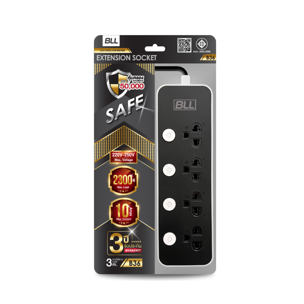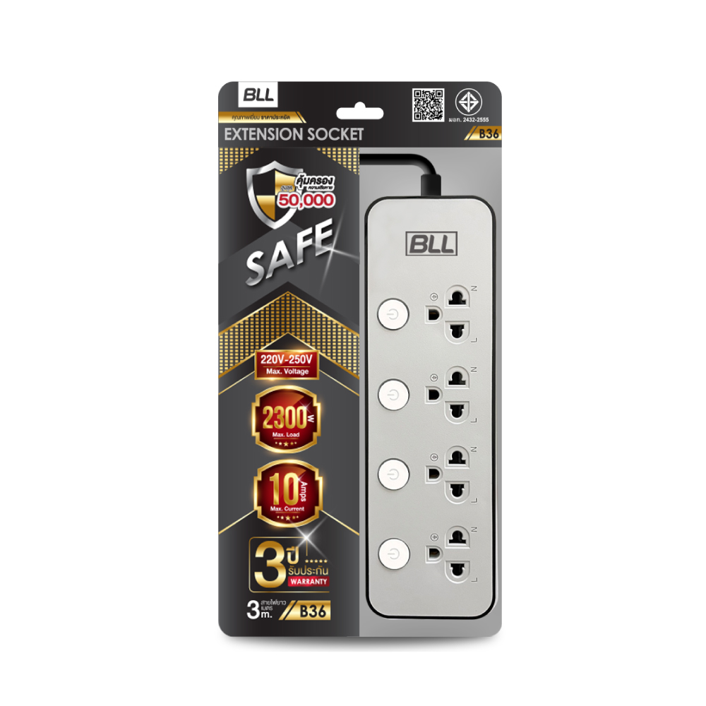 + Free Shippingปลั๊กไฟคุณภาพ BLL B86 ที่มีคุณสมบัติตัดไฟพร้อมถ้าเกิดอุบัติเหตุจากปลั๊กไฟ BLL จะได้รับความคุ้มครองสูงถึง 50,000 บาท รับประกัน 3 ปี
