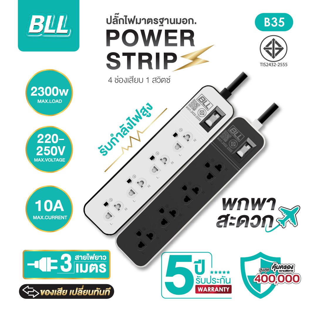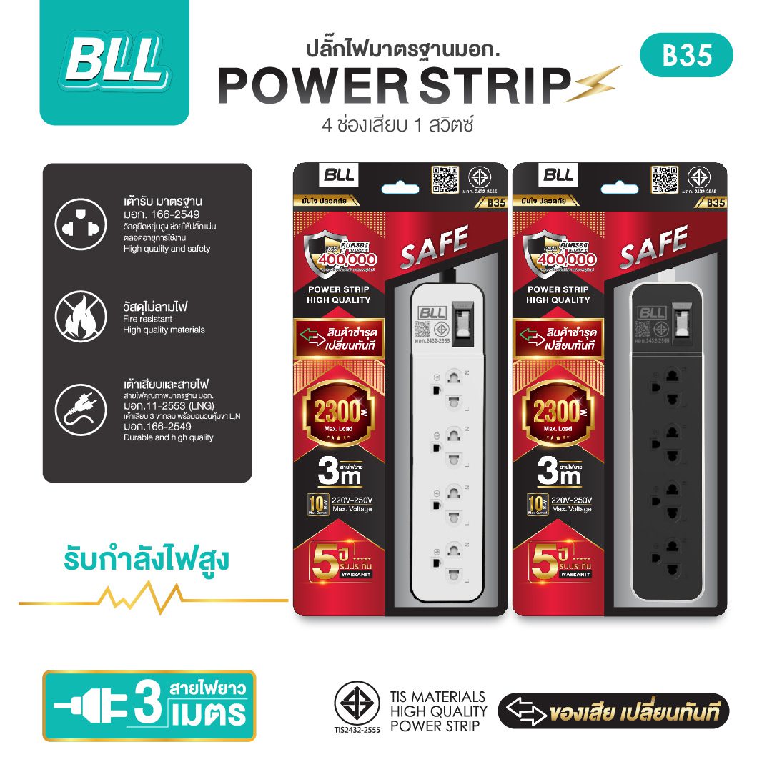 - BLL B35 ปลั๊กรางไฟ 3หัว (1 สวิตซ์ + 4 ช่องเสียบ) สายยาว 3 เมตร