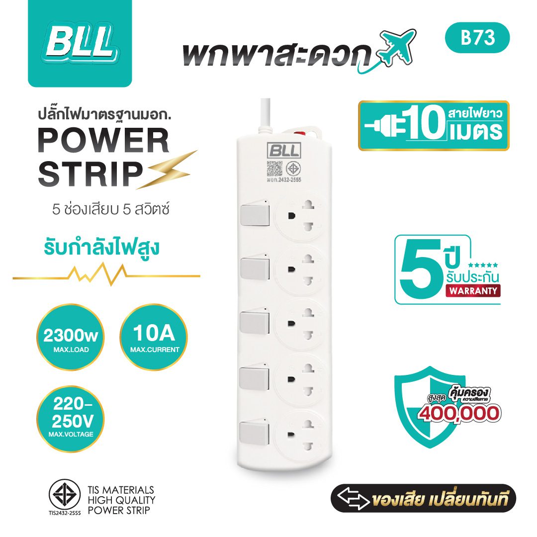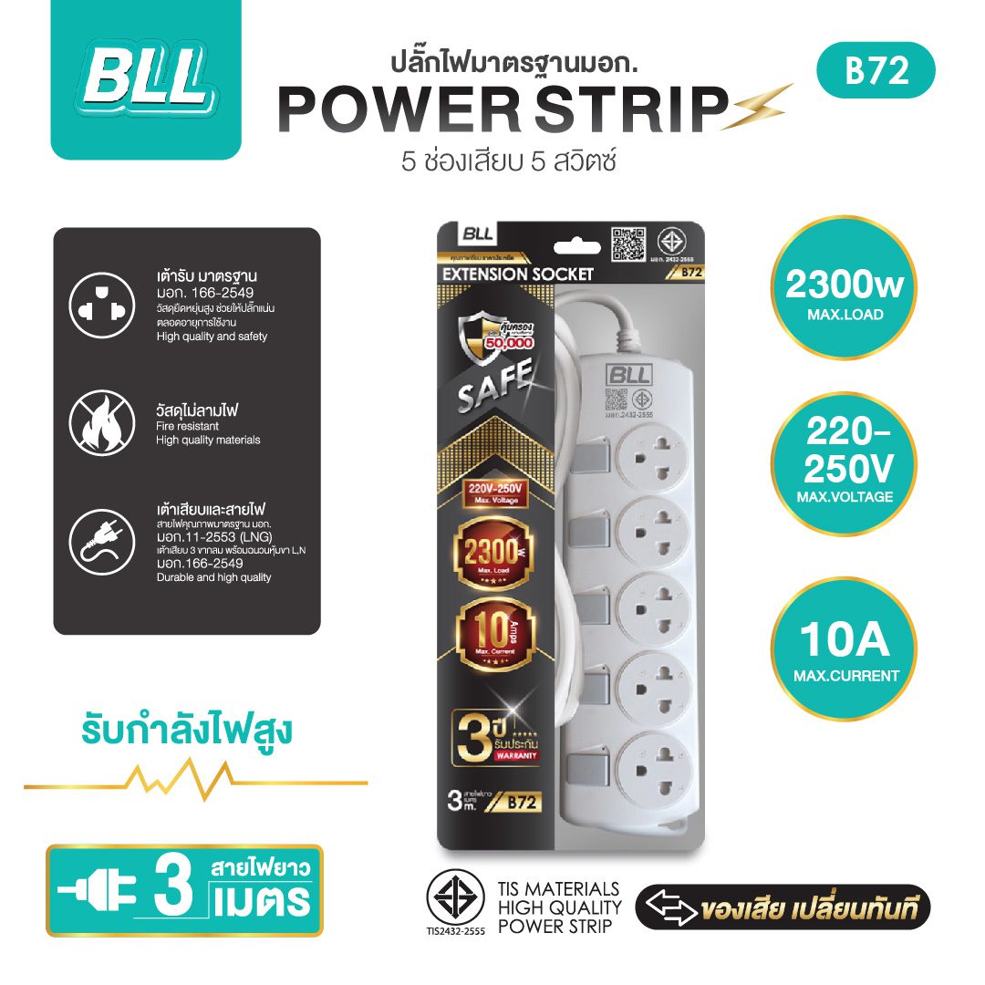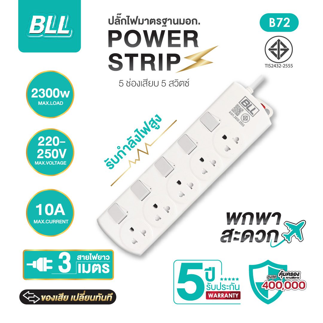 | ช่องเสียบใช้งาน | 5 เต้ารับ มาตรฐาน (มอก.166-2549) |