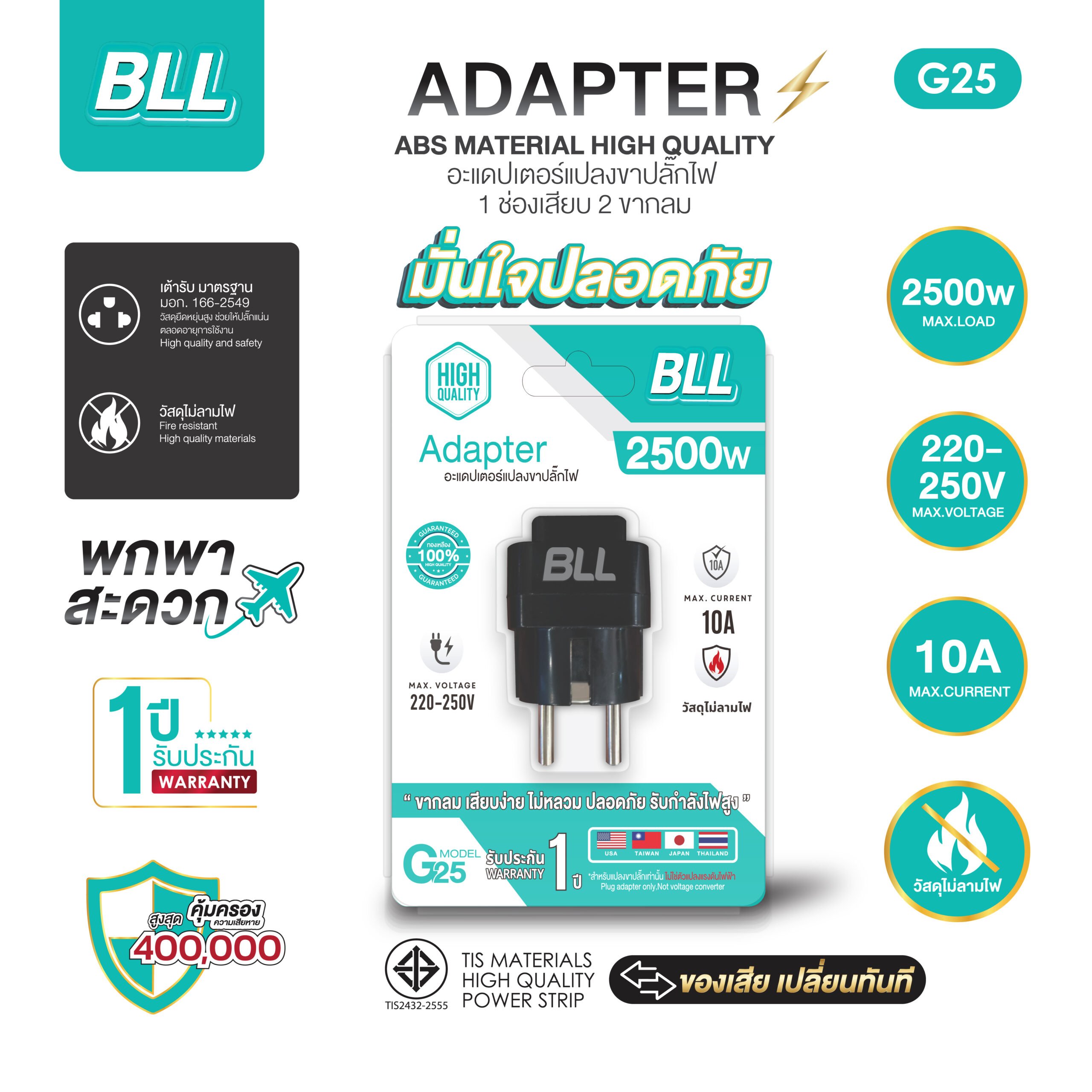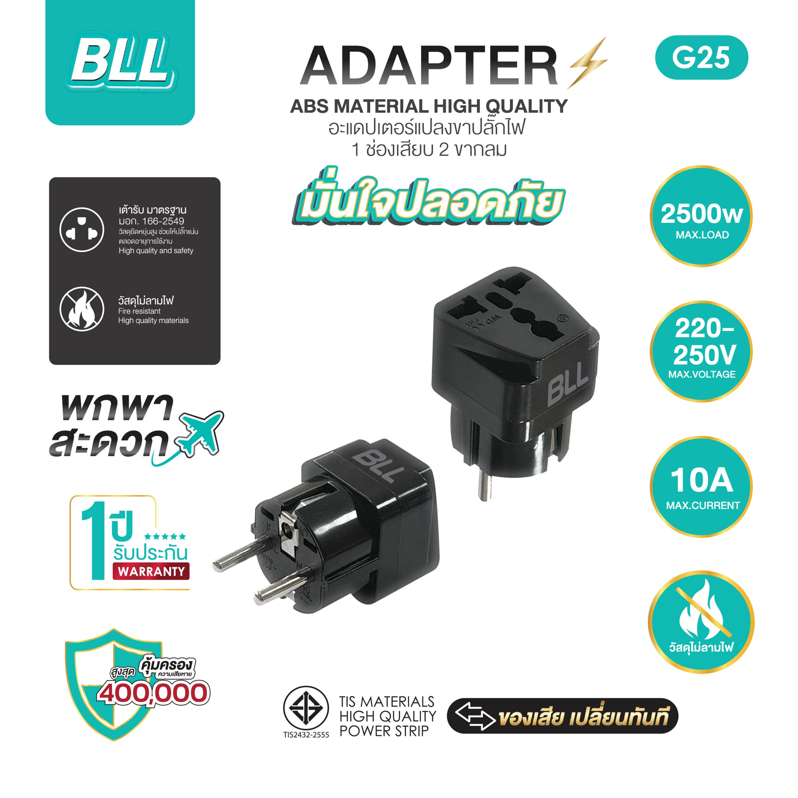 BLL G25 Adapter แปลง 2 ขากลม 1 ช่องเสียบ